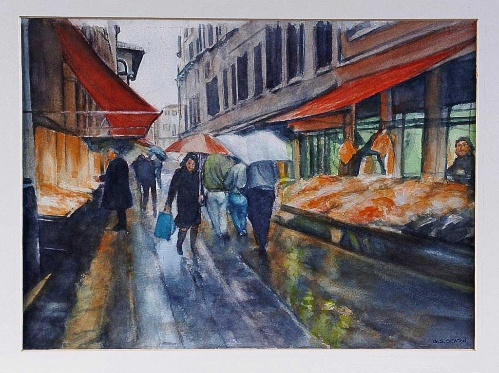La pieza es talentosa, decorativa, atmosférica. Consigue sobradamente su intención, esa de capturar el instante y mostrar su belleza. Contrasta la luz de esos tonos cálidos en los puestos del mercado, con el azul y gris plúmbeos de un día de lluvia.