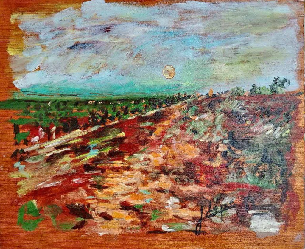 Pareciera que el horizonte tuviera algo que decir, incluso el sol en su naciente, pero no. Es el camino el asunto. Su dirección no apunta hacia el sol; sabe que pronto quedará frente a él, pero será el astro quien se cruce con el sendero.