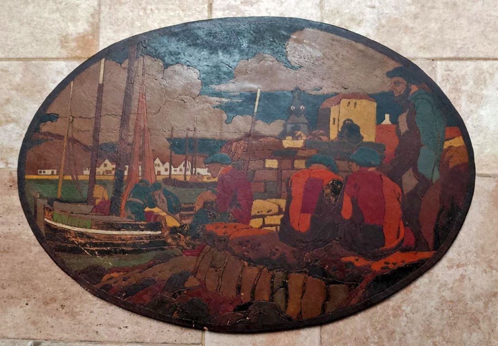 Traigo a estas horas intempestivas una pieza a medio camino entre la artesanía y el arte. Se trata de un pirograbado policromado de la primera mitad del siglo pasado, que procede de la escuela bretona.