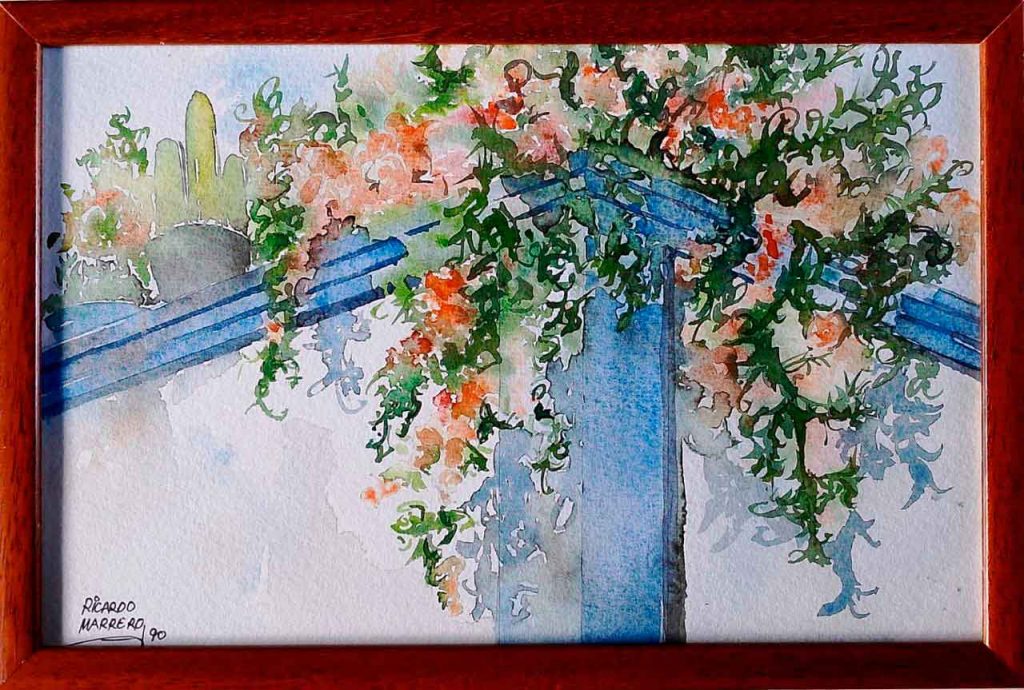 Mi hermano me ha dado permiso para subastar una pintura suya. “Patio particular. Mayo ‘96”. Acrílico sobre madera. 40 x 30 cm. Mi hermano pinta para su casa, ya no expone, ya dejó todo contacto con ese mundo tras ganar un premio.