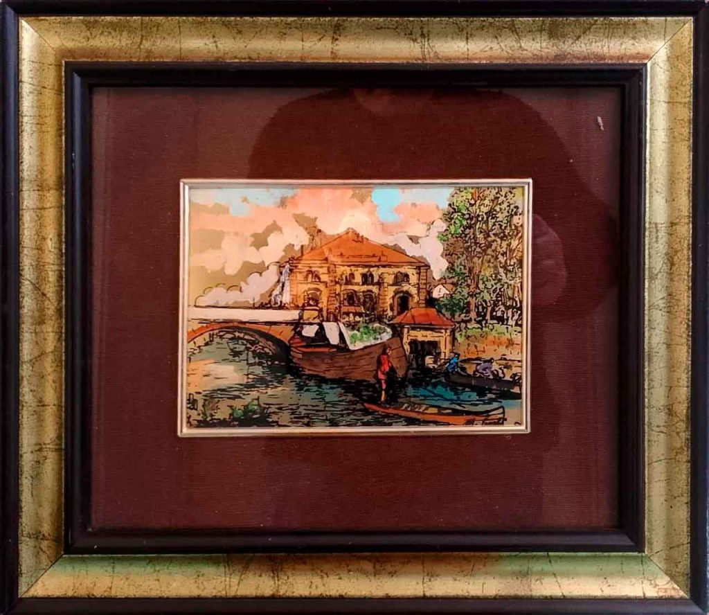 A veces, el museo de arte abandonado me recuerda un lugar así, entre el texto de “Nada” y la obra que les traigo hoy, recogida de la basura; un acrílico sobre lienzo de 22 x 27 cm.