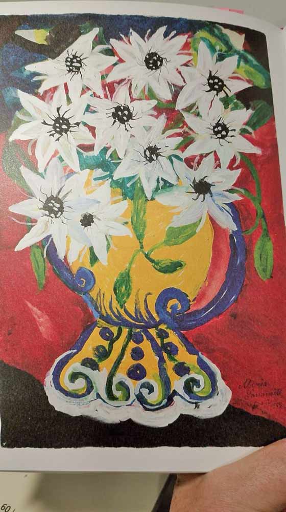 Como contrapartida traigo en los comentarios dos obras de María Sanmartí, extraídas del catálogo de su exposición. Madre del artista Antoni Clavé, que empezó a pintar casi con setenta años, cuyas obras están llenas de una jovilidad inconmensurable. No sé si Ana seguirá pintando. Vaya desde aquí mi deseo por que haya encontrado el color y llene su vida de polícromos estallidos saturados de vida.