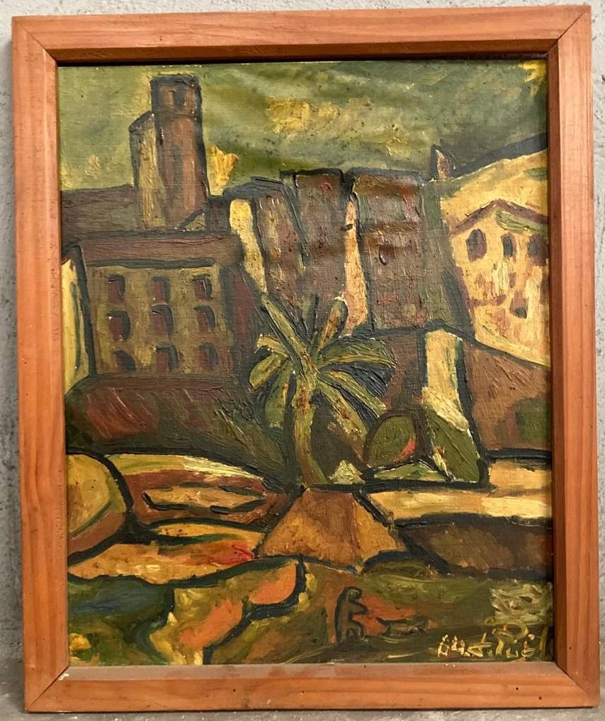 Me entusiasmo con cada cuadro abandonado por las calles de la isla, que descubro o me descubren. David, uno de mis buscadores del Sur y que sigue negándose a prestar su testimonio para un documental, hace unos días me pasa la imagen que les presento. No sabe determinar si es original. Yo tampoco. He de verla al natural, con la lupa. Cada viaje al sur supone unos veinte euros de gasolina, más un bocadillo en una estación de servicio a la que la familia anda apegada cada vez que va para allá, antes de llegar a San Isidro cuando vamos por autopista, o a una cafetería en Santiago del Teide si hacemos camino por el Norte. Y a veces, con el propio David, dos cafés o dos cañas. Una ruina, vamos. Me tiende la imagen nada más vernos y resulta una impresión mecánica. El tono amarillento es efecto del mucho sol del sur. Decido traérmela. Ya en casa, paso la imagen por Google lens y sale la postal con la que acompaño esta nota y la adquiero en una tienda de la península; la recibí ayer por correo. Seis euros más. El valor del sello oscila entre 0,15 céntimos y 1 euro. La “postal” es un simple trozo de papel de unos 200 gramos, sin otra inscripción al dorso.