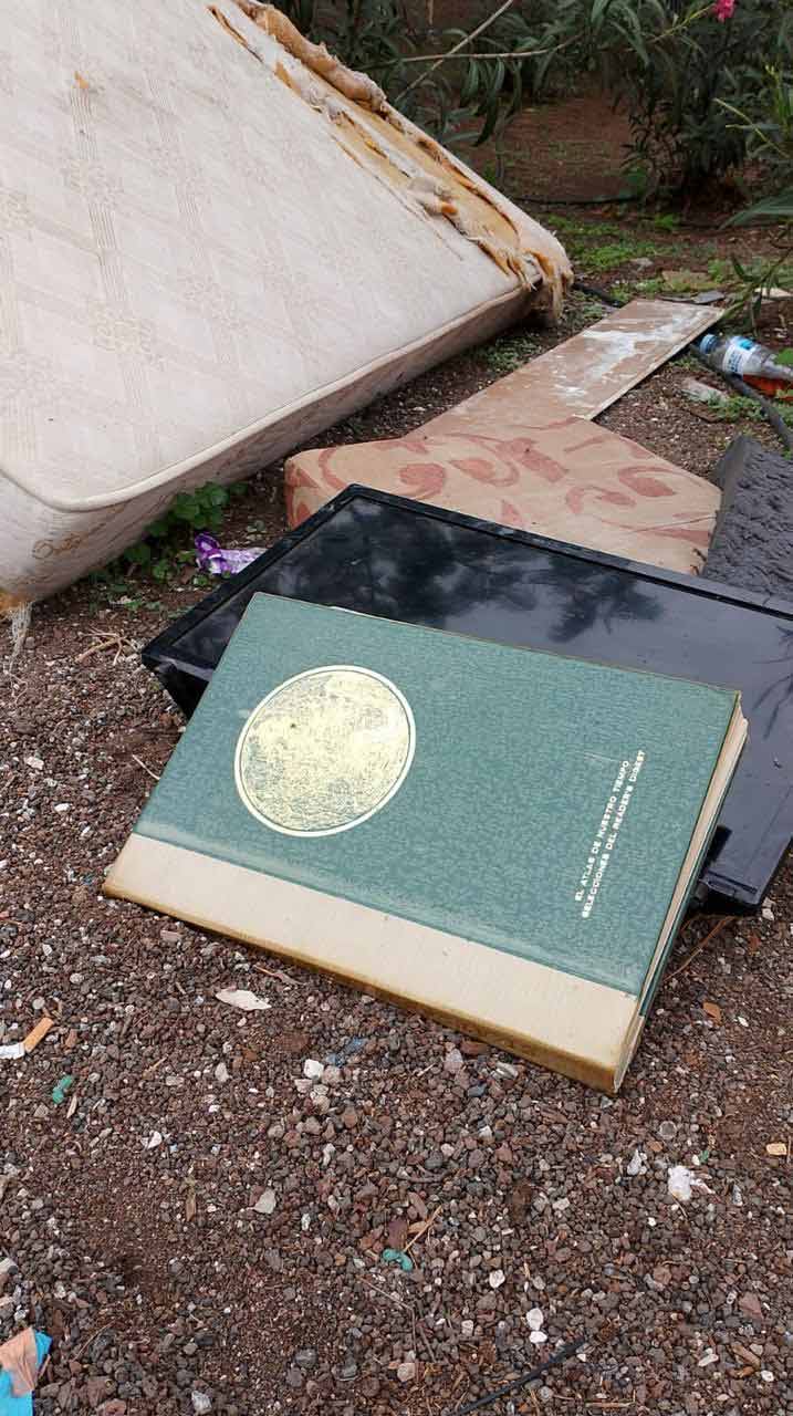 Tenía asuntos varios pendientes por la capital. Desde las nueve de la mañana me desplacé de un lado a otro con el auto. Fuerte locura; tanto contendor por las calles supone un problema. Menos mal que Ramón me enseñó una máxima en la conducción: “crea espacio tras de ti, crea espacio”. Eso supone estar pendiente de lo que te viene por detrás, no vayas a suponer un obstáculo, y ocupar cuanto espacio vacío veas por delante. Por eso, pese a circular pendiente de lo que hay por fuera en los contenedores, no supongo un obstáculo para la circulación. Retomo… Que iba yo a por unos mandados, que se dice y, circulando ya hacia el destino final, por la carretera del Chupadero, en Tacoronte… Vi algo extraño en un grupo de contenedores y me detuve. No lo podía creer. Tal cual, esos machangos estaban ahí. Alguien los había pegado al filo del container. No me atreví a quitarlos, tenían algo de poético; eso sí, ya puestos, ojeé el interior del vertedero. Algo me decía que… ¡Et voilà! Efectivamente. Esos cíclopes enanos parecidos a los “Menairons”, unos pequeños duendes del Pirineo catalán, me señalaban un tesoro especial, como hecho a su medida. Rebusqué en la bolsa negra que asomaba hacia el exterior y… ¡Allí estaba este estuche para cerillas de los años 60/70! Cuero repujado y pintado a mano. Como diría mi amigo Juan Carlos: “esto se cuenta y no se cree”. La vida del buscador tiene estas recompensas. Le pasé la imagen a un amigo que sabe de todo un poco respecto a objetos vintage. Me orientó rápidamente sobre la fecha aproximada y la técnica. ―Le preguntaré a Juan Mazuelas. ―Dijo. ―Él hizo cosas así, igual que decoró platos en cerámica. Los platos los firmaba con sus iniciales. Eran tiempos en los que se hacía de todo para ganarse la vida, y él siempre ha sido muy buen ilustrador, también. Vaya, pensé. Qué de cosas que aprende uno. ―Luego ―prosiguió mi amigo ―Entregó muchos objetos guanches al Gobierno de Canarias; de esas cuevas que tiene en el sur, porque él es un gran antropólogo. A cambio, me imagino, el Gobierno regaló un cuadro suyo a la infanta Cristina cuando se casó. De aquello hace ya mucho tiempo…