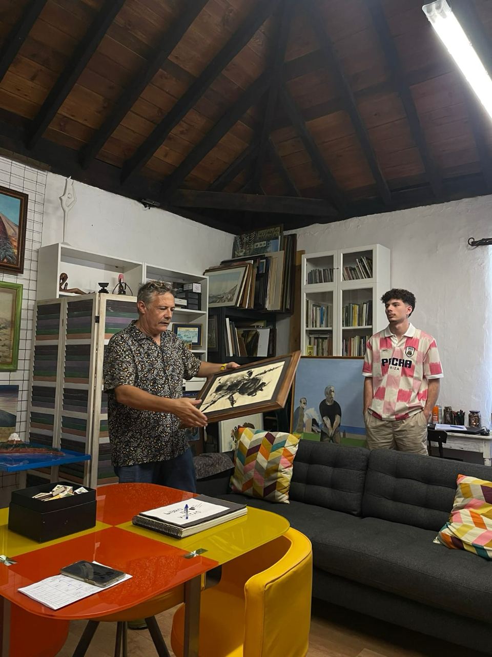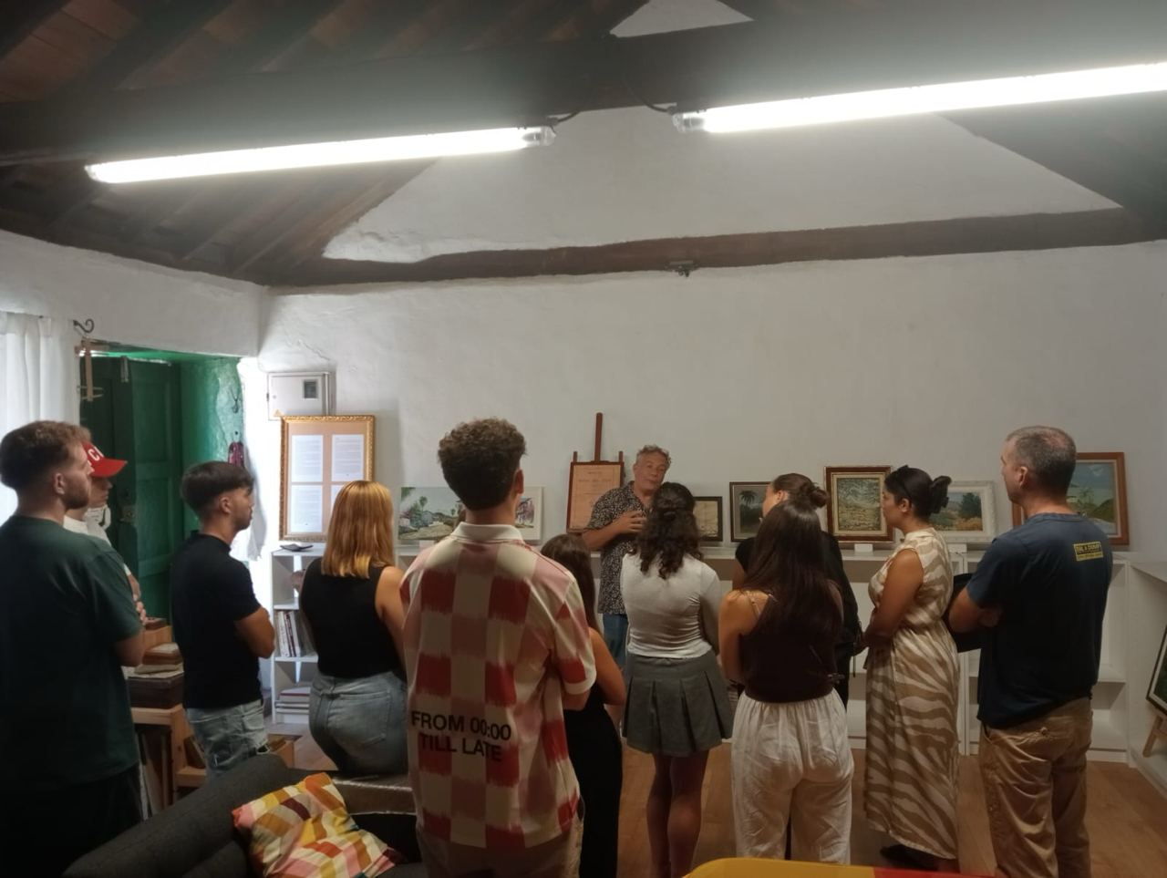 El Museo de Arte Abandonado recibió ayer a las alumnas y alumnos de cuarto de Turismo de la Universidad Tomás Iriarte del Puerto de la Cruz. Una interesantísima visita guiada en la que se habló de modelos turísticos, claro, de la isla como destino, del valor del arte, de los límites entre arte y artesanía, del patriarcado en el arte, de la vida y de la muerte. Todas y todos dejaron sus impresiones selladas en el libro de visitas. Su guía, el profesor y antropólogo Pablo Estévez, ya me informó de la excelente acogida por parte del alumnado de la propuesta museística y de la experiencia académica. Evidentemente, se puso en cuestión el modelo “Loro Parque”.